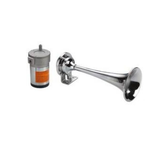 Bu tekli trompet havalı korna, kromaj kaplı pirinç sistemi ile hem estetik hem de dayanıklı bir marin sesli uyarı sistemidir. 12V elektrik sistemi ile çalışır ve 123 dB ses gücü ile güçlü ve net uyarı sağlar. COLREG72 kurallarına uygunluk sertifikasına sahiptir ve 20 metreye kadar tekneler için uygundur.