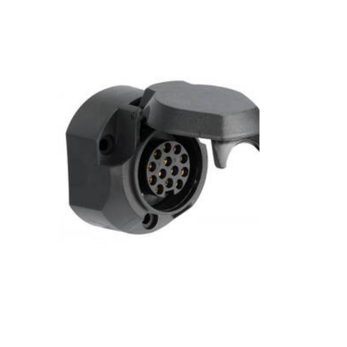 13 soketli 12V römork prizi , araç şasesine monte edilmiş römork, tekne römorku (tekne römorku) ve karavan elektrik bağlantısını güvenli şekilde sağlar. Siyah ABS gövdesi sayesinde darbelere ve dış ortam koşullarına dayanıklıdır.