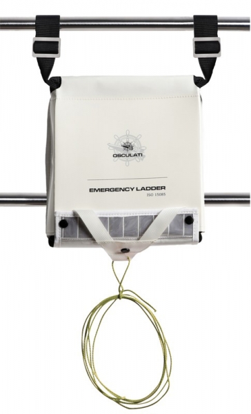 ISO 15085 standartlarına uygun acil merdiveni. Acil durumlarda tekneye geri tırmanmak için kullanılacak merdiven. Kıç pulpite kolay ve hızlı kurulum.