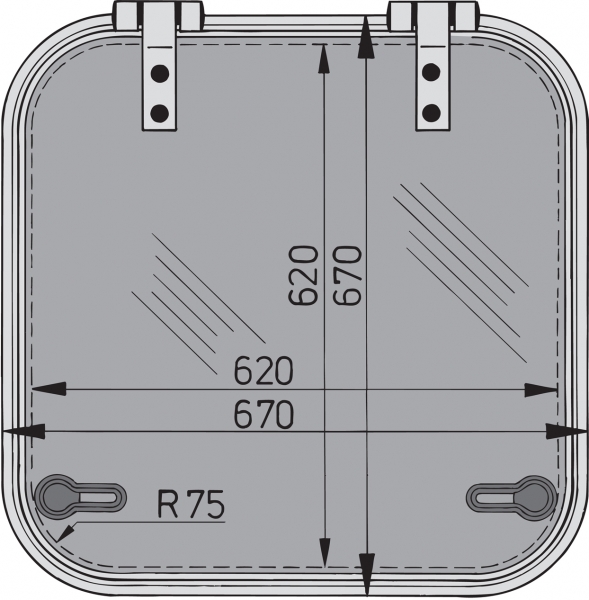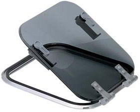 Vetus hatch. Tip Planus. Anodize alüminyum çerçevesi 75 mm köşe açılıdır. Camı 10 mm duman rengi akriliktir.