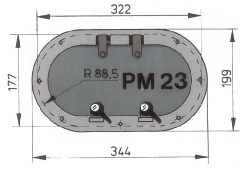 Vetus lomboz, tip PM23. Çerçeve elde cilalanmış anodize alüminyum, camı 10 mm duman rengi akriliktir. Sineklik opsiyonel ekipman olarak sunulmaktadır.