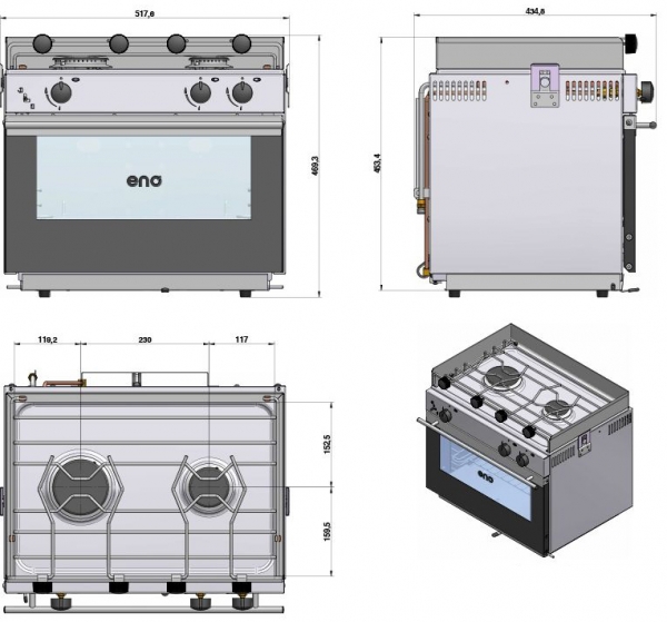 Eno Origin Çift Ocaklı Fırın, marin ve mobil yaşam alanları için özel olarak tasarlanmış, gazla çalışan çok fonksiyonlu bir pişirme çözümüdür. İki ocak gözü ile aynı anda yemek pişirme imkanı sunarken, entegre fırın bölümü ile çok yönlü mutfak kullanımı sağlar.