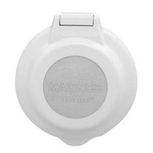 Marinco 220V yuvarlak priz. UV ışınlarına mukavim cam takviyeli plastik gövde. Kolayca açılıp kapanan watertıght kapak.