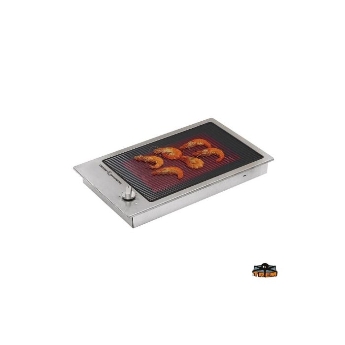 Çizgili cam-seramik yüzeyi sayesinde hem kolay temizlenir hem de şık bir görünüm sağlar. Rezistans ısıtma teknolojisi ile çalışan bu marin ızgara, hızlı ısınma ve stabil performans avantajı sunar. Gömme yapısı sayesinde tekne mutfaklarında yer tasarrufu sağlarken düzenli bir kullanım alanı oluşturur.