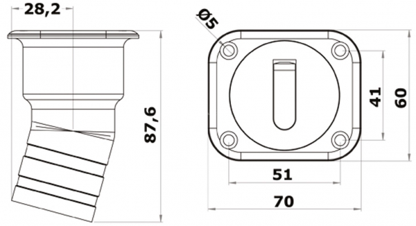 Kare Pis su ağızı. Sadece 3.5mm kalınlık ile ince profillidir. Polisajlı AISI 316 paslanmaz çelikten üretilmiştir. Hortum Ø 38mm.