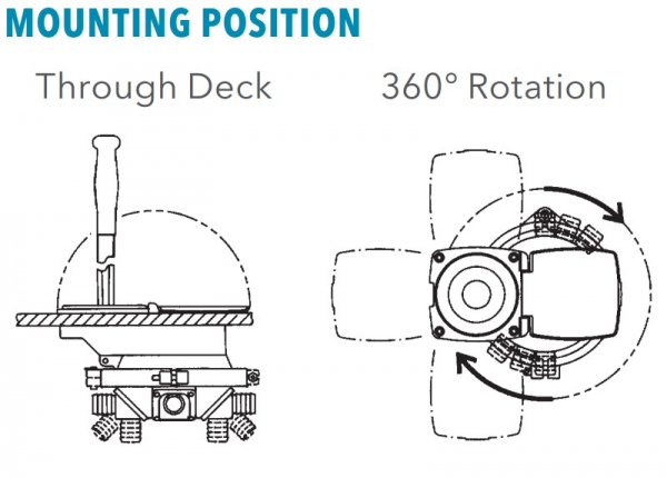 Çıkarılabilir sap ve güverteye veya bölmeye montaj için geçiş kitli. Thrudeck'in tasarımı, port yönü için sınırsız seçenekler sunar ve pompa haznesine ile vanalara kolay erişim sağlar.