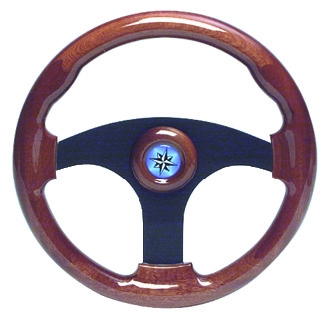 Direksiyon simidi, kolları siyah anodize alüminyum, tutamak maundur. Ø 355 mm.