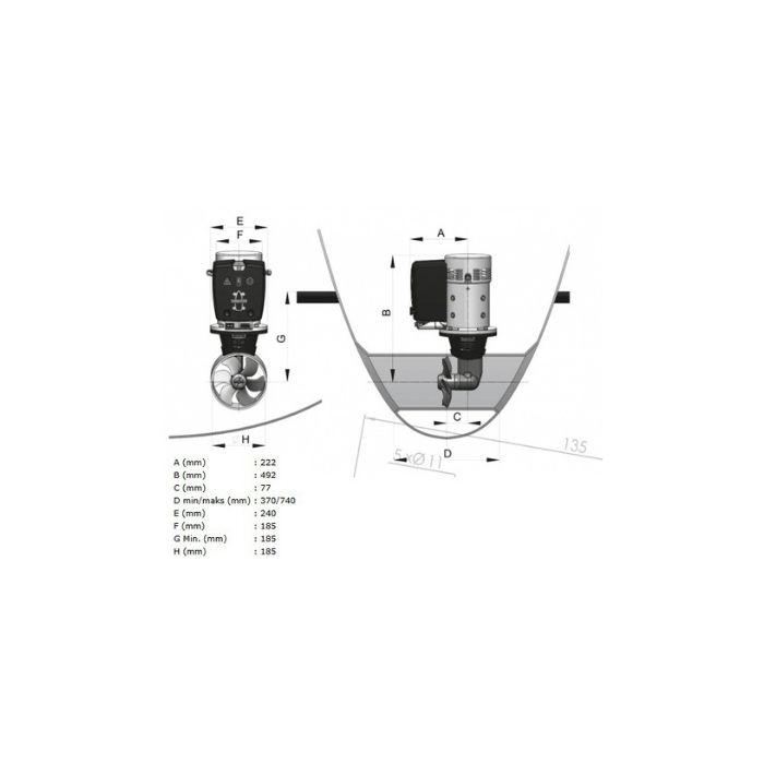 105 kgf itme gücüne sahip olan bu baş pervane, 12 metre ile 17 metre arası teknelerde dengeli ve güçlü manevra performansı sağlar. Baş pervane modelleri arasında bu güç seviyesi, orta ve büyük teknelerde stabil kontrol isteyen kullanıcılar için ideal bir çözüm sunar. 24V DC çalışma sistemi, yüksek verimli güç aktarımı sağlar.