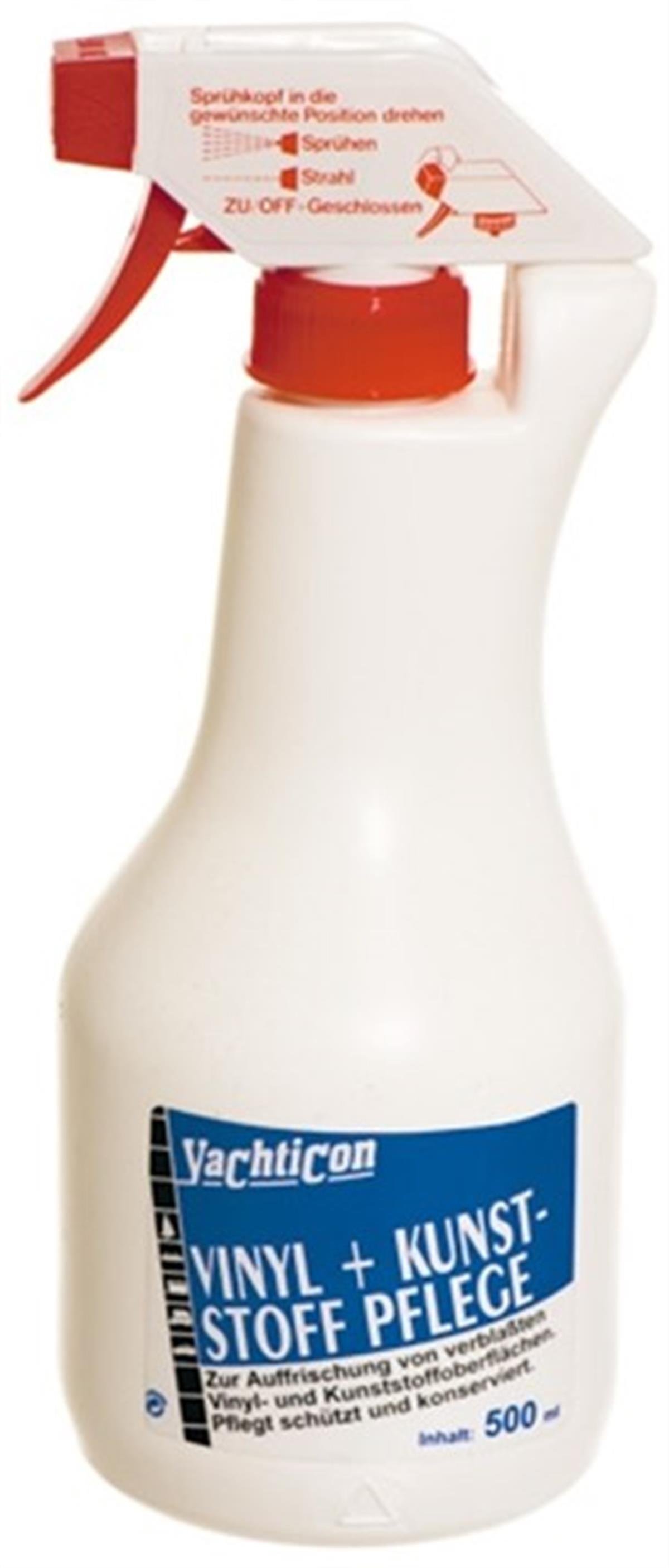 Yachticon Vinyl and Plastic Care 500 ml, teknelerde bulunan vinil, plastik, kauçuk ve suni deri yüzeyleri yenilemek, korumak ve parlaklığını geri kazandırmak için geliştirilmiş profesyonel marin bakım ürünüdür.
